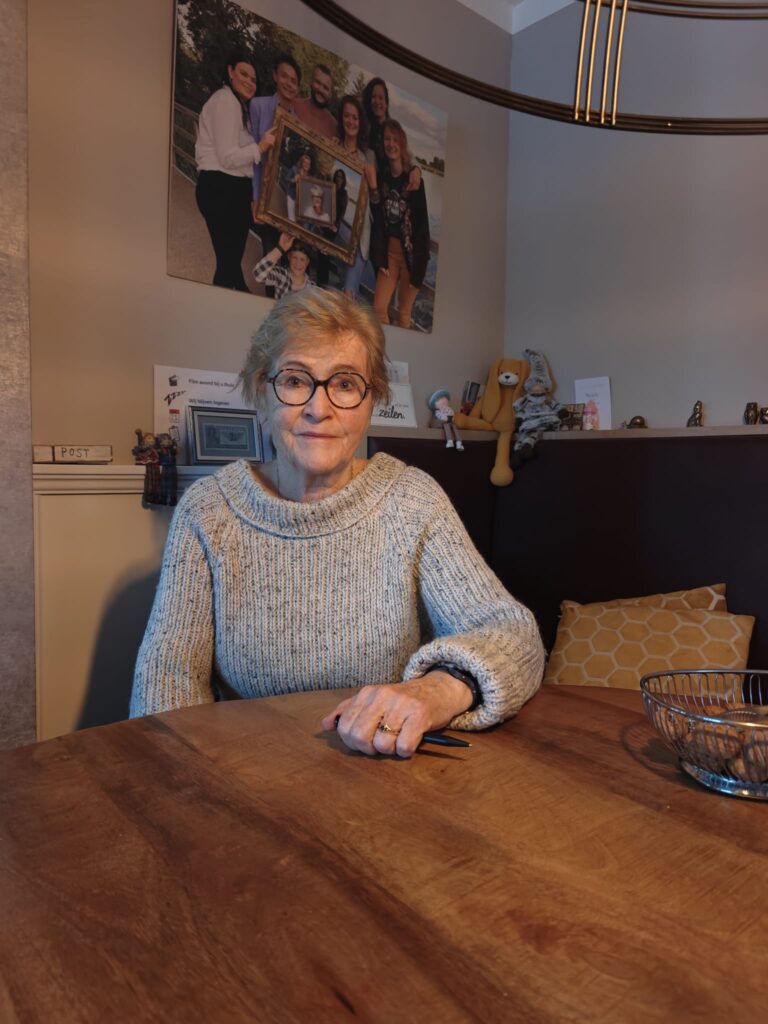 Francine – Ach kind, ik kan nog uren vertellen over vroeger. We hebben gelukkig ook zoveel met elkaar gelachen. Wat nog wel erg leuk is om te vertellen is dat er vroeger ook regelmatig Jehova getuigen aan de deur kwamen, mijn moeder hield altijd wel van een discussie maar ze had er op een bepaald moment helemaal geen zin in. Toen m’n moeder ze weer aan zag komen zei ze tegen mij, ‘kom, we verstoppen ons’. Uiteindelijk lagen we samen onder de tafel, die Jehova getuigen liepen toen ook achterlangs en klopten op de deur. En wij lagen dus onder de tafel te giechelen en wachten, ons afvragend of ze al weg zouden zijn. We hebben hier ook achteraf nog echt heel erg om gelachen! We hebben ook vaak heel erg gelachen met Thijs Lokersen, die kwam op maandag middag altijd met zijn fiets met een groot papieren pak achterop. Daar zat allerlei lingerie en handdoeken en theedoeken in om te verkopen, hij had dan ook van die onderbroeken met een pijpje, dat noemde we truttenbroeken. Cees vond het leuk om hem te plagen, hij vroeg hem dan ‘heb je nog van die truttenbroeken?’ Dat vond Thijs echt niet leuk. Cees haalde dan bijvoorbeeld een bevroren hemd van de drooglijn buiten en zette die rechtop voor Thijs op tafel en zei, ‘kijk nou eens wat voor rommel je verkoopt man, dat kan je toch niet aantrekken’, Het ging soms zo ver dat Thijs wel vroeg als hij aankwam: ‘Is Cees er?’ want dan zette hij zijn fiets zo neer dat hij hem binnen vandaan kon zien. Cees zette die fiets vaak ergens anders als Thijs het niet zag. Thijs bleef wel komen want onze uitzet werd bij hem gekocht, maar je merkte aan hem dat hij altijd een beetje huiverig was voor Cees. Maar misschien kan Cees daar zelf meer over vertellen als je hem gaat interviewen, die heeft vast nog verhalen zat!
